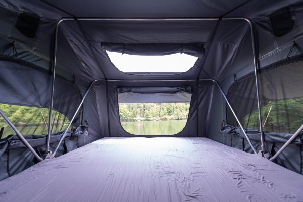 Cortul dispune de o fereastră PVC integrată în acoperiș, care permite luminii naturale să pătrundă în interior și oferă o priveliște frumoasă către cerul înstelat. Ferestrele laterale sunt prevăzute cu plasă de insecte, asigurând ventilație adecvată și protecție împotriva insectelor.