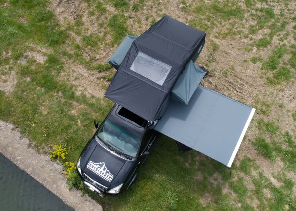 Cortul de plafon auto Overlander Explorer cu lățimea de 1,9 m și sky roof, dotat cu o extensie, este perfect pentru cei care caută un spațiu generos și confortabil în timpul aventurilor în aer liber. Cu caracteristici precum impermeabilitate, ferestre laterale cu plasă de insecte, materiale durabile și o scară telescopică inclusă, acest cort oferă o experiență plăcută și sigură pentru camping și explorarea naturii.